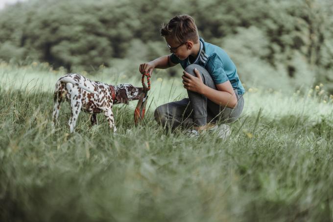 We're always on the hunt for a toy that stands up to the task for those dogs that are a bit more robust with their toys. The "Tough Pombas" series lives up to its name thanks to its particularly hard-wearing material. Take the toy outside and let your dog look for it. If it's dirty afterwards, you can easily clean the toy in the washing machine at 30 °C.