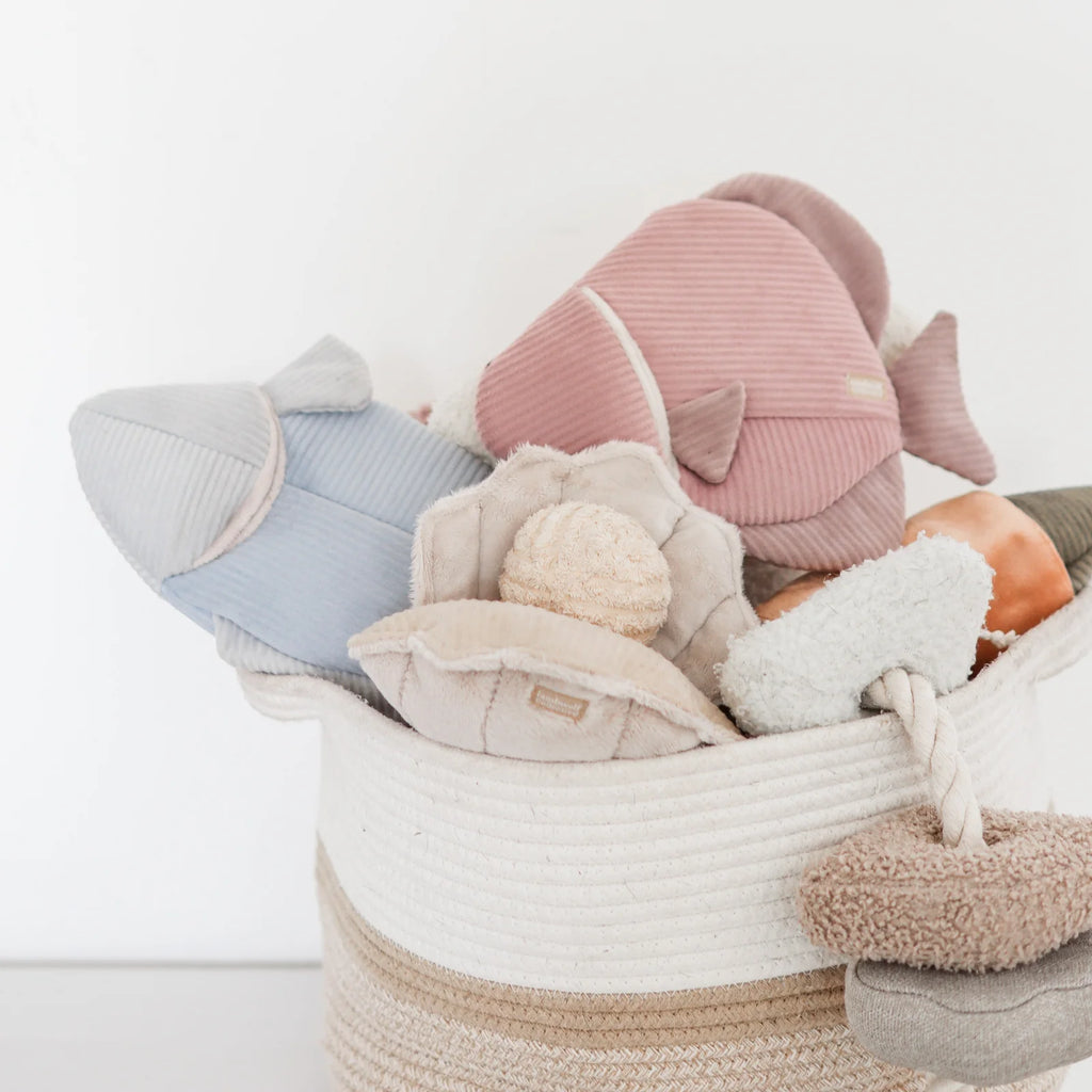 Angel Fish is a 2-in-1 burrow and snuffle enrichment play object. Inside is one large squeaky fishbone for chewing and all the fins crinkle! There are multiple pockets for you to hide treats in.