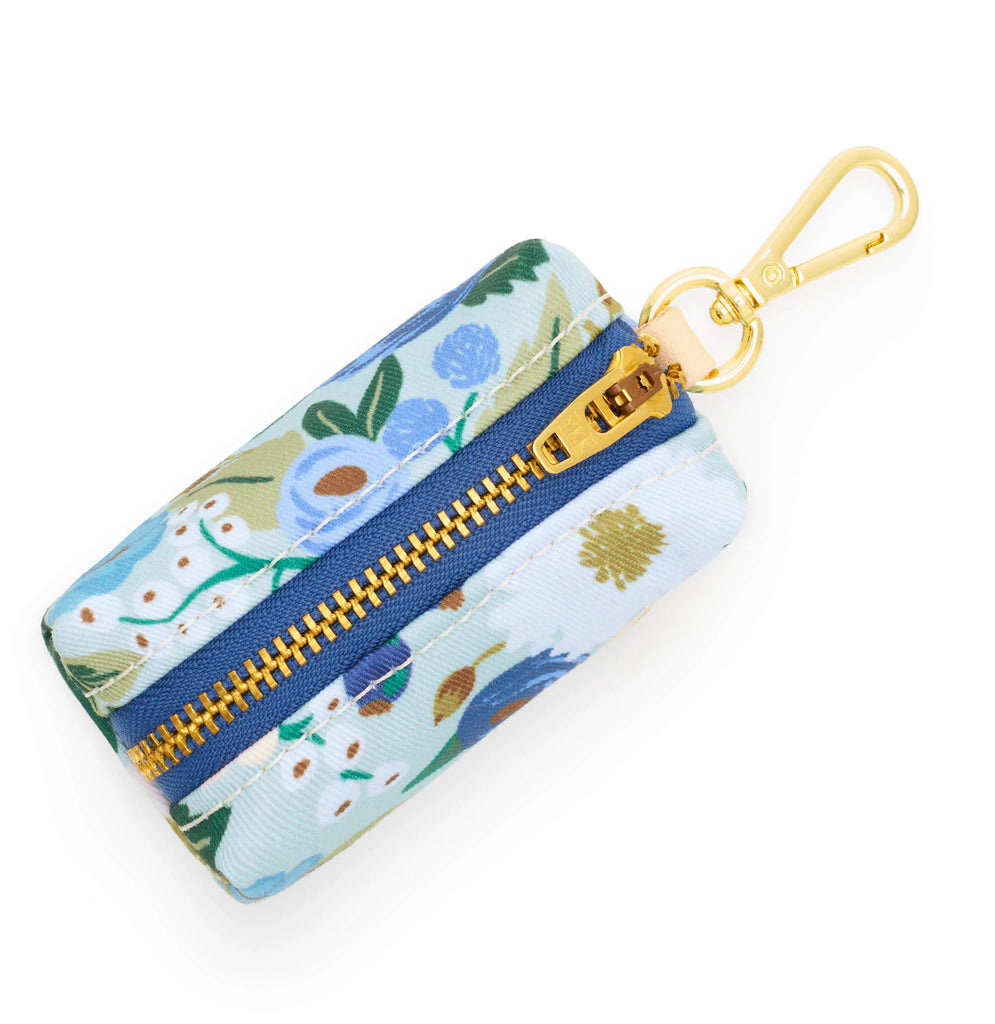 A beautiful poop bag holder makes chic happen when sh*t happens. Part of the limited-edition Rifle Paper Co. x The Foggy Dog collection. Includes one free roll of extra-thick, leakproof poop bags. Vintage Blossom is a painterly floral in shades of blue, sage green and ivory with gold toned accents.